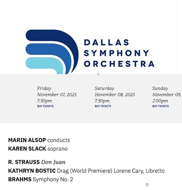Kathryn Bostic's commissioned piece DRAG by Grammy winning Soprano Karen Slack has a Dallas Symphony Orchestra World Premiere! Based on the life of the incredible Harlem Renaissance entertainer Gladys Bently. Wonderful libretto by Lorene Cary and conducted by legendary Marin Alsop!